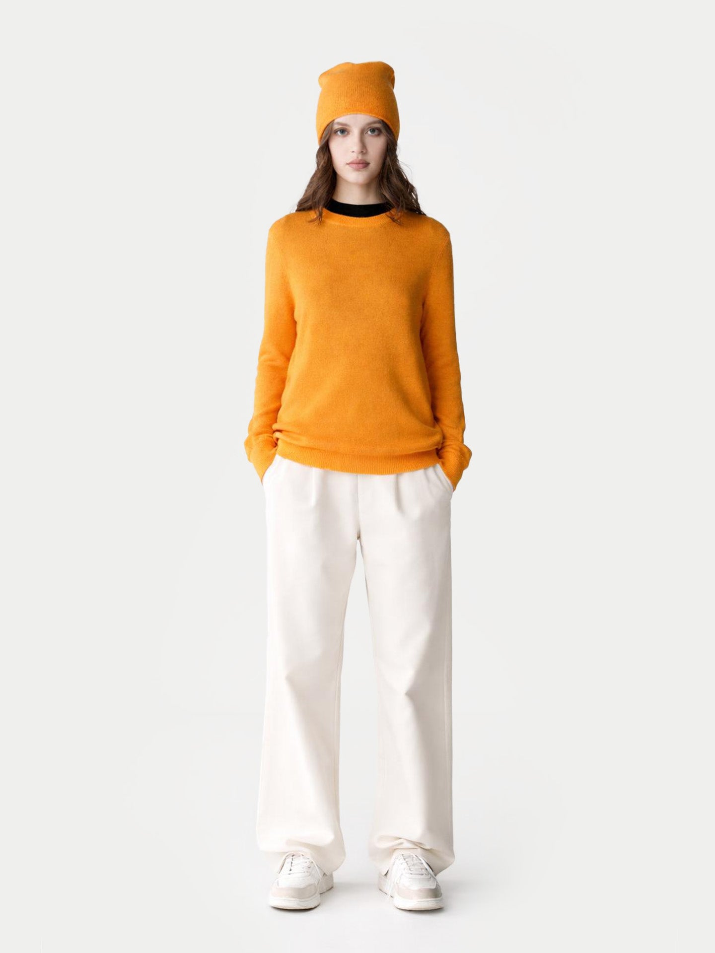 A basic with endless possibilities. The Basic Crew Neck Sweater with a lightweight hat is an ideal layering piece both for your current wardrobe and the one you dream about. Throw it over a button-down shirt for a smart, casual look, or layer over a dress for laid-back chic. Creamy yet lightweight, it's a must-have for your collection.